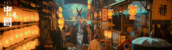 随着年代的推进,纪录片《中国》第二季的影像风格也出现了一定变化。片中适当启用特效,并在“假定性美学”的表达上,融入了不少写实表达,以一种独特中式表达,创造出独属于纪录片《中国》的影像风格。在画面构图上,《中国》充盈着传统美学风格,无论是在自然风光中的外景还是宫廷屋内的内景,都有一种独特的中式留白;在画面质感上,电影级画质依旧,但色彩表达又在光影流转中浓郁不少;而在拍摄方式上,纪录片以宽画幅来呈现重要场景及历史时刻,大气写意,可迅速将观众带入其中,感受历史的鲜活脉动,整体呈现出一种独特的“纪录片《中国》式”的中国美学——其意蕴是古典的,而技法是现代的;其志趣是中式的,而表达是具有世界性的。